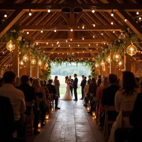 Motywy tematyczne: na przykład rustykalne przyjęcie może obejmować drewniane akcenty, słoiki z kwiatami i naturalne tkaniny.